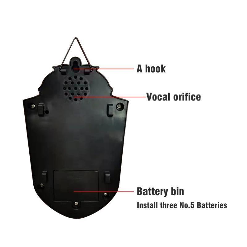 Aktiver dørklokken, og øyet blinker med grønt lys, roterer og fremsier skremmende lyder. Denne skumle dørklokken vil garantert gi frykt og furore under Halloween!