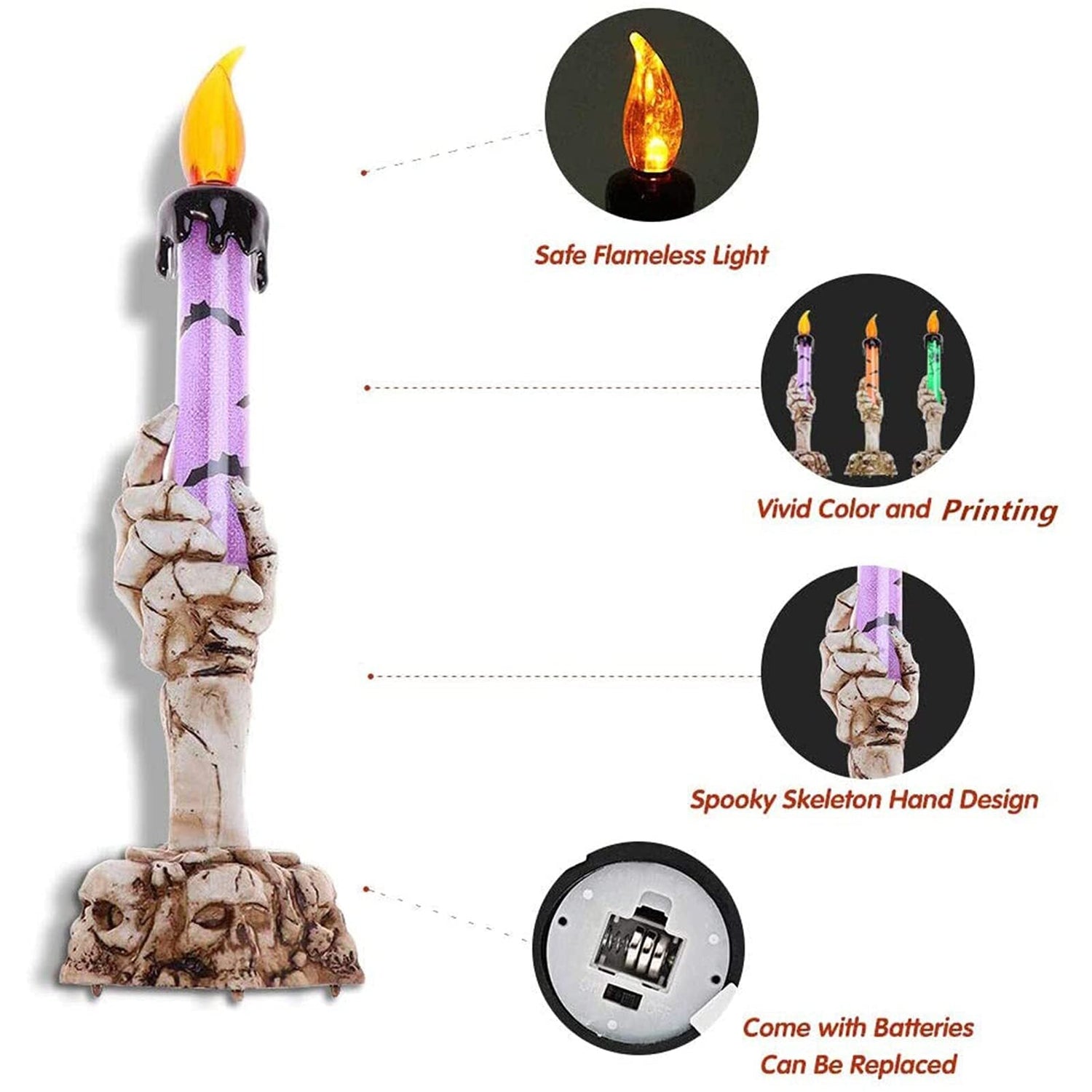 Dette elektroniske hodeskallelyset til Halloween er laget av materialer av høy kvalitet, som gjør det slitesterkt og forlenger bruksperioden. Enkel betjening, ingen behov for å lade.