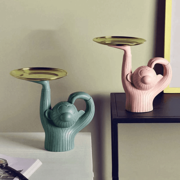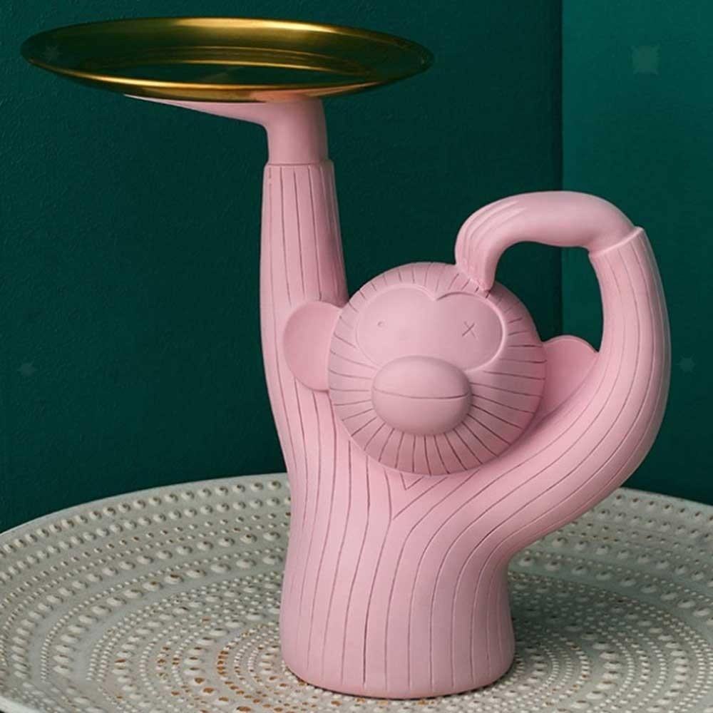 KUNST ORGANISATOR - Ser du etter en kreativ oppbevaringsløsning for kunstmateriellet ditt hjemme eller på kontoret? Dette kan være det perfekte valget for deg! Skulpturen har en søt ape som holder et brett, ivrig etter å bli dekorert med din personlige stil.