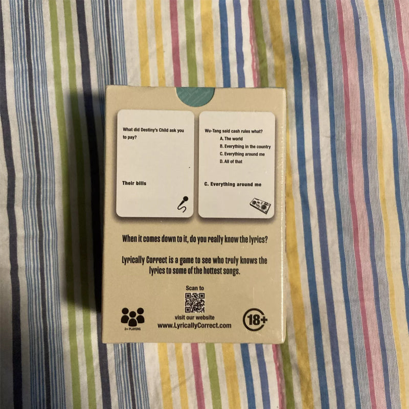 Lyrically Correct er et morsomt trivia-spill som tester hvem som virkelig kjenner teksten til sine favorittsanger.