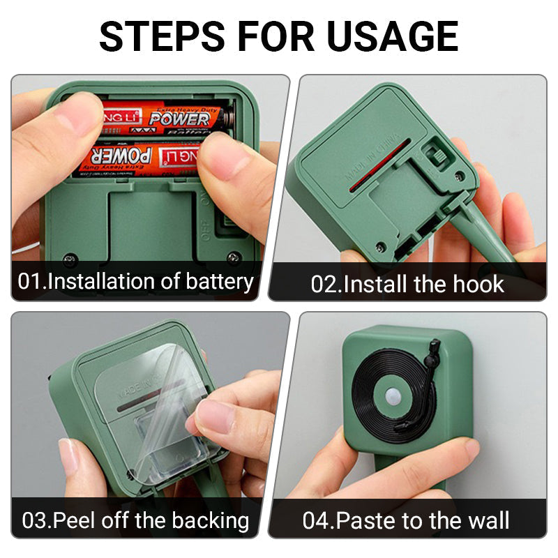 ENKEL INSTALLASJONSPROSESS: Det er enkelt å installere denne enheten. Den leveres med tydelige instruksjoner, og du kan fullføre installasjonen på bare noen få trinn. Enheten har kroker nederst for oppheng og kan enkelt festes på veggen ved hjelp av det medfølgende limet, noe som gjør den praktisk å plassere hvor som helst i hjemmet.