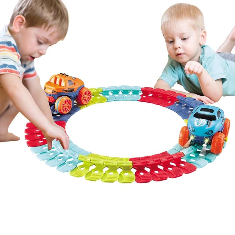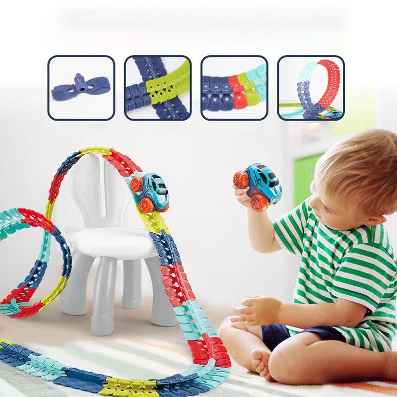 - Perfekt gave til bursdagen: Den tilpassbare racetrakken utgjør en strålende gave til barnet ditt; du kan til og med bruke vanlige gjenstander som stiger, bøker, sofaer, bord eller trær for å bygge broer, tunneler, ramper og mer for ubegrenset moro.