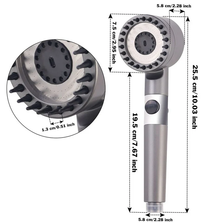 Oppdag det ypperste innen dusjkomfort med det kraftige høytrykks massasjedusjhode. Dette 3-i-1 dusjhodet forvandler din daglige dusj til et forfriskende fristed. Nyt den perfekte kombinasjonen av sterkt vanntrykk, moderne filtrering og massasjefunksjoner – alt designet for å gjøre badeopplevelsen din til en personlig velvære-oase.