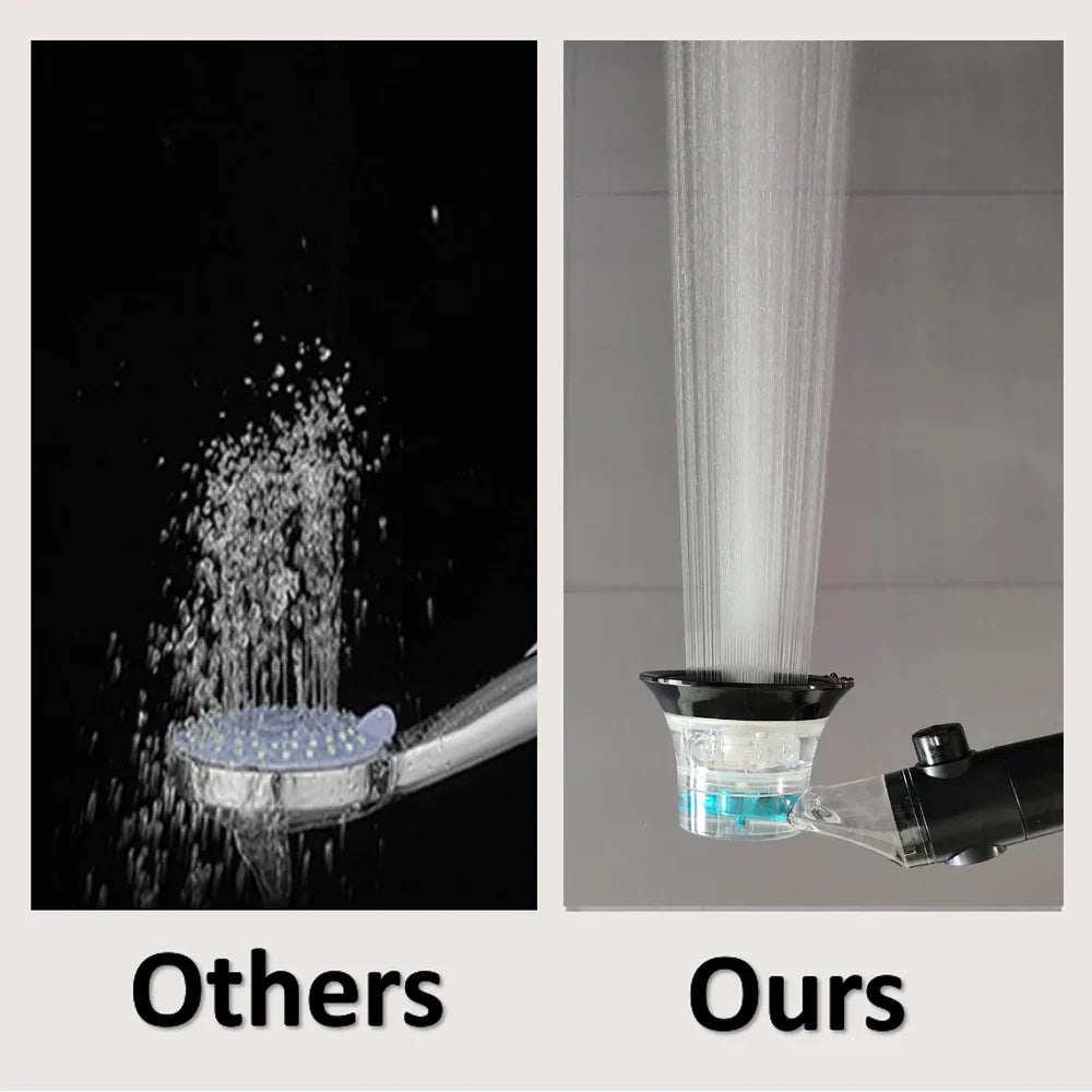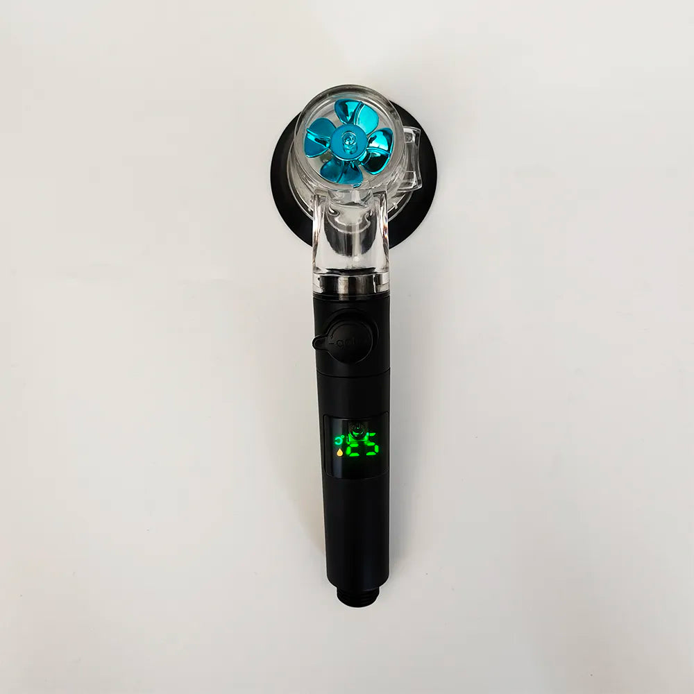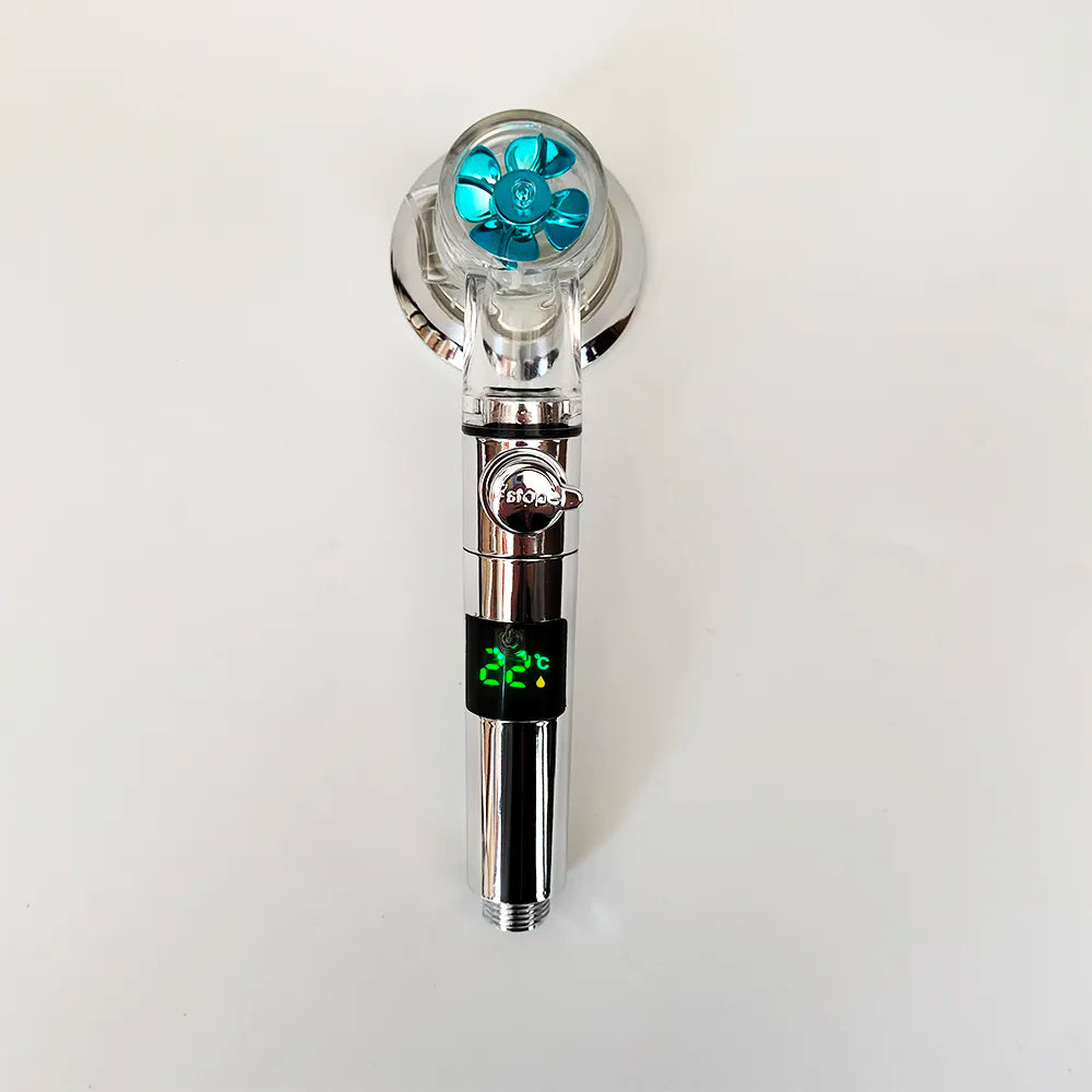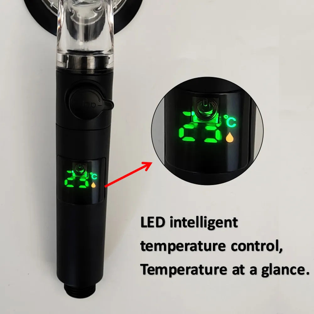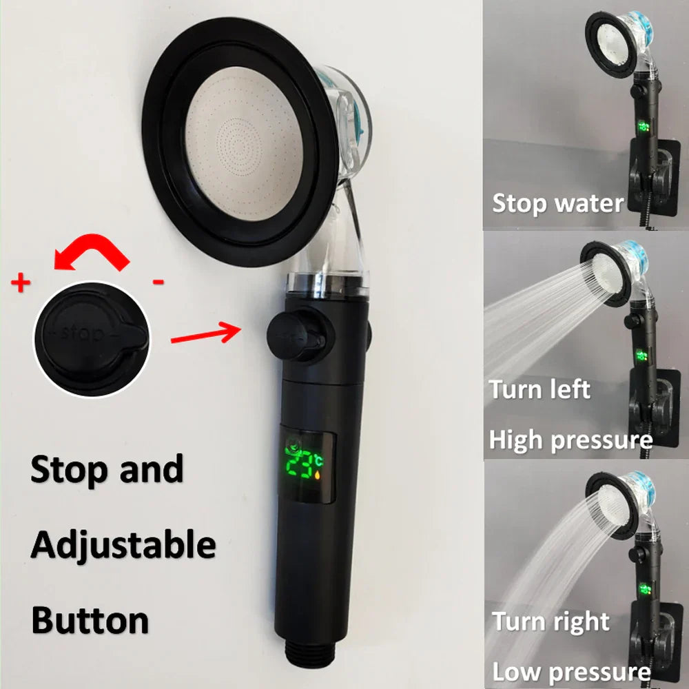 Hjemix | Høytrykk-turbopropelldusjhode med temperaturindikator og vannbesparende stoppknapp - Håndholdt baderomsdusjhode