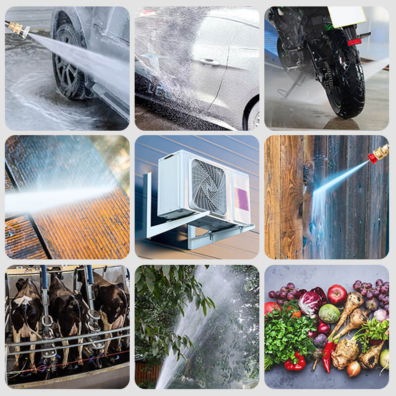Høytrykkspyler med batteridrift har en allsidig 3-i-1 trykkdyse, som lar brukerne enkelt bytte mellom sprøytestyrker (0°, 40° og vanning). Du kan enkelt og raskt rengjøre alle dine utendørsområder og utstyr uten å bytte dyser.