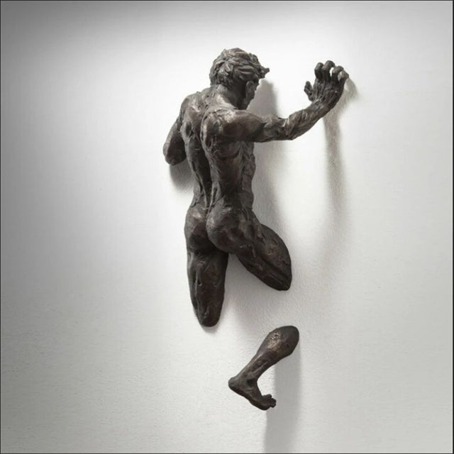 Hjemix | Imitasjon Kobber Harpiks Ornament Abstrakt Figur Veggkunst Klatrer 3D Gjennom Vegg Statue Skulptur