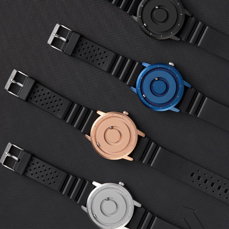 Unik Design: Hver klokke er utstyrt med to kulelager som sirkler rundt urskiven ved hjelp av magnetiseringsteknologi. Timeviseren følger en bane på den indre kanten, mens minuttviseren danner en annen bane på den ytre kanten.