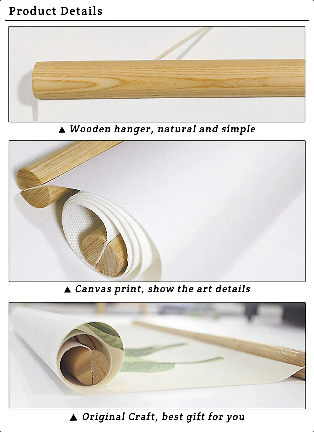 Japansk stil kunstverk i rullestørrelse. Inkluderer en solid trebøyle som ikke kan fjernes.