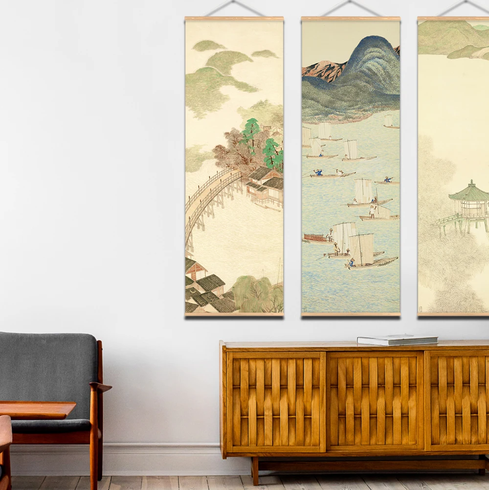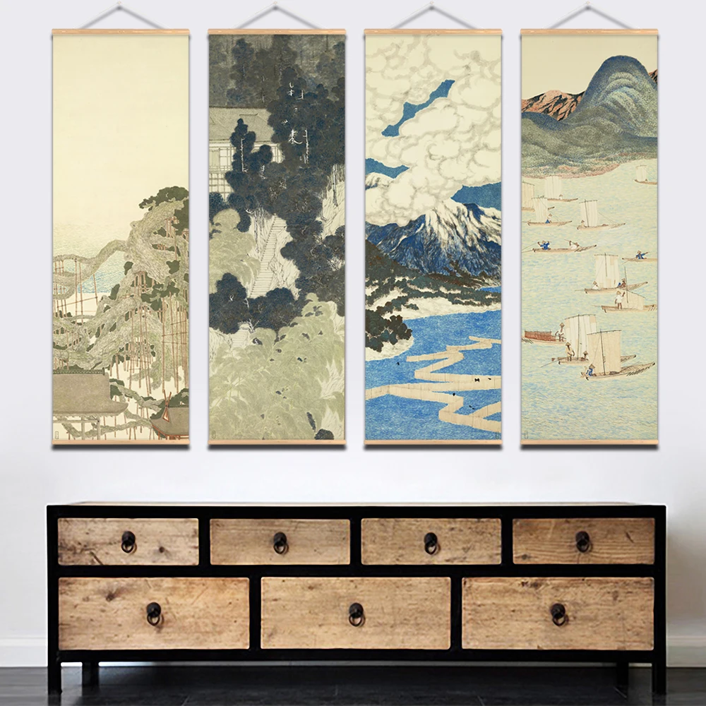 Hjemix | Japansk Ou-Mi Ukiyoe Rulleskrifts Plakat Landskaps Veggkunst Bilder Stue Vintage Maleri Landhus Innredning