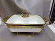 Tilbyr i nyanser av hvitt komplementert med gull detaljer.