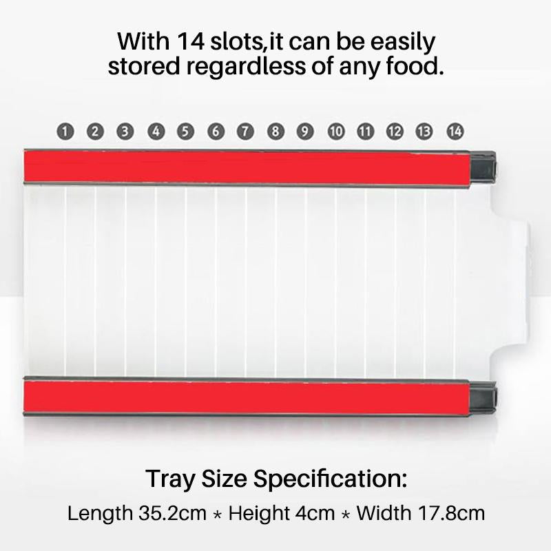 GLIDELÅSEPOSE HOLDER: Kan holde opptil 14 glidelåseposer med en lastkapasitet på inntil 10 kg; de 14 posene er ideelle for ukentlig måltidsplanlegging.