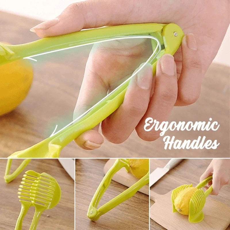 Den kan raskt brukes til å kutte sitroner, poteter, eller runde frukter og grønnsaker! -