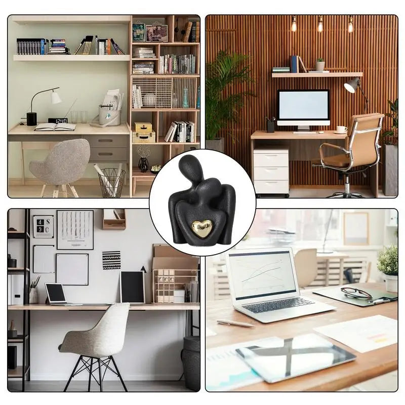 Denne dekorative nordiske skulpturen fanger essensen av kjærlighet og forbindelser, og viser to abstrakte menneskelige figurer som er sammenknyttet i en delikat omfavnelse, som symboliserer enhet og hengivenhet. Den glinsende hvite/svarte overflaten gir et preg av moderne eleganse, mens den gyldne hjerteakcenten i midten tilfører varme og et hint av luksus til ethvert rom. Perfekt for stuen, soverommet eller kontoret, er denne skulpturen ikke bare et dekorativt element, men også et uttrykk for kjærlighet og harmoni. Enten du ønsker å forbedre interiøret ditt eller leter etter en meningsfull gave, vil disse fengslende nordiske skulpturene helt sikkert etterlate et varig inntrykk. Ta dette utsøkte stykket med hjem og la det være en konstant påminnelse om skjønnheten ved å være sammen.
