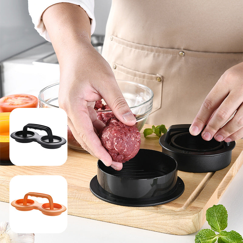 - Tidsbesparende og praktisk :Ved raskt dobbeltklikk kan du enkelt forme runde burgere. Dette verktøyet lager 2 perfekt utformede burgerpattyer hver gang! Forberedelsestiden minimaliseres betydelig og det er ekstremt brukervennlig.
