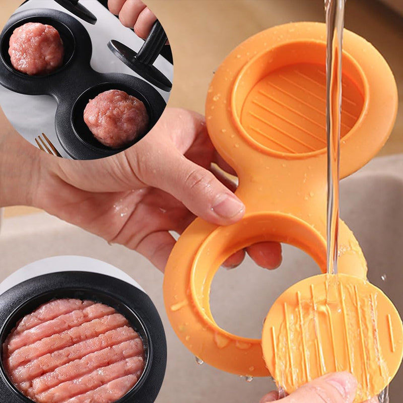 - Praktisk design: Det unike spor-design gjør at det passer godt i hånden din, noe som gjør forming av pattyer enklere.