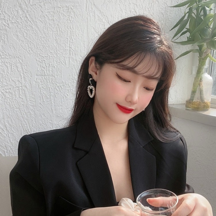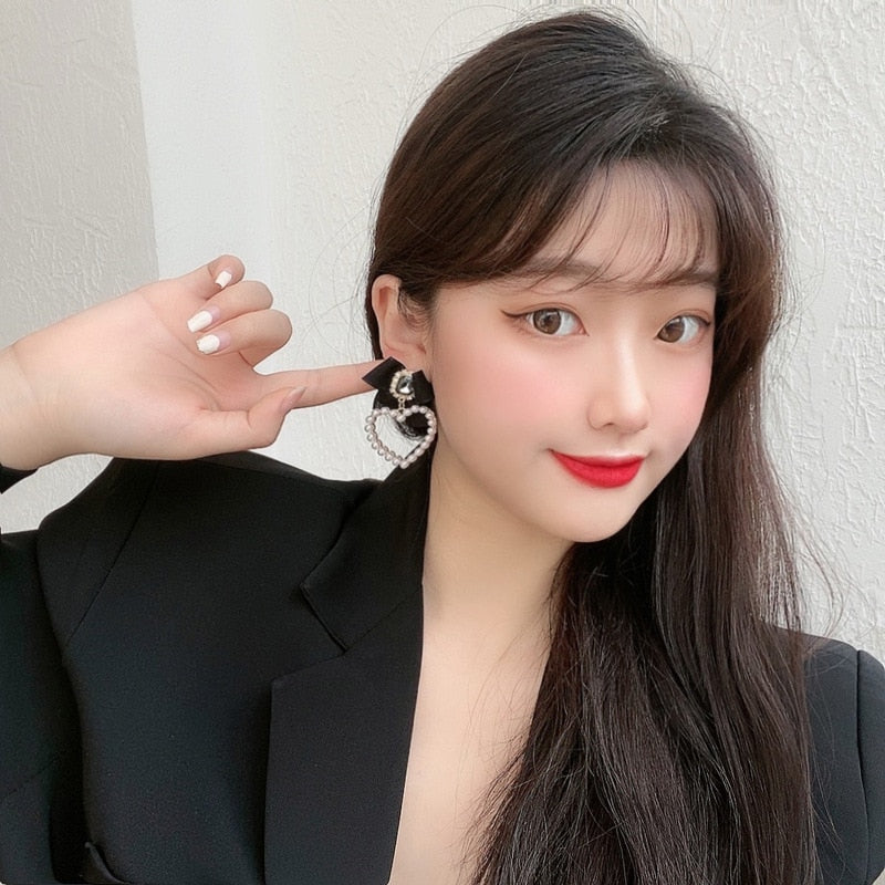 Motebånd - Koreansk Temperament Retro Rhinestone Sløyfe Klipp Øredobber Svart SløyfeKnot Hjerteformede Perler Klipp på Øredobber Uten Hull for Kvinner Festselskap
