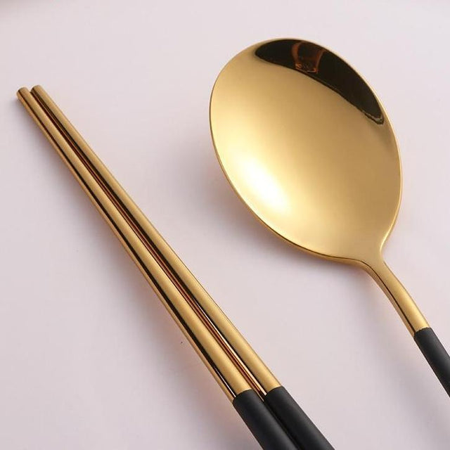 De koreanske spisepinnene har en imponerende høyglansfinish. Du kan velge et enkelt sett eller gå for den omfattende 18-delte bestikkolleksjonen!