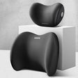 Settet inneholder både en nakkestøttepute og en midjepute. Nakkestøtten støtter nakken og hodet, noe som reduserer belastningen og forebygger ubehag under lange kjøreturer. Midjeputen støtter korsryggen og bidrar til en sunn sittestilling, noe som reduserer ryggsmerter og tretthet.
