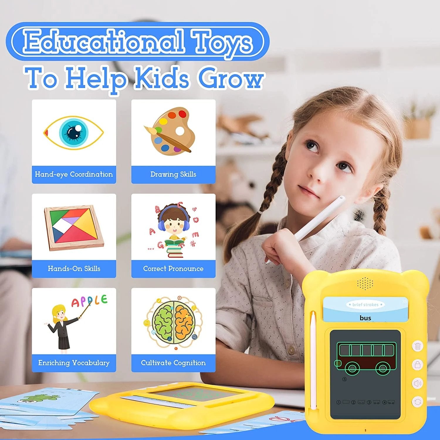 Dette leketøyet er en uvurderlig måte for oppdragere å lære enkle ord og gjenkjenne dem med bilder og navn.