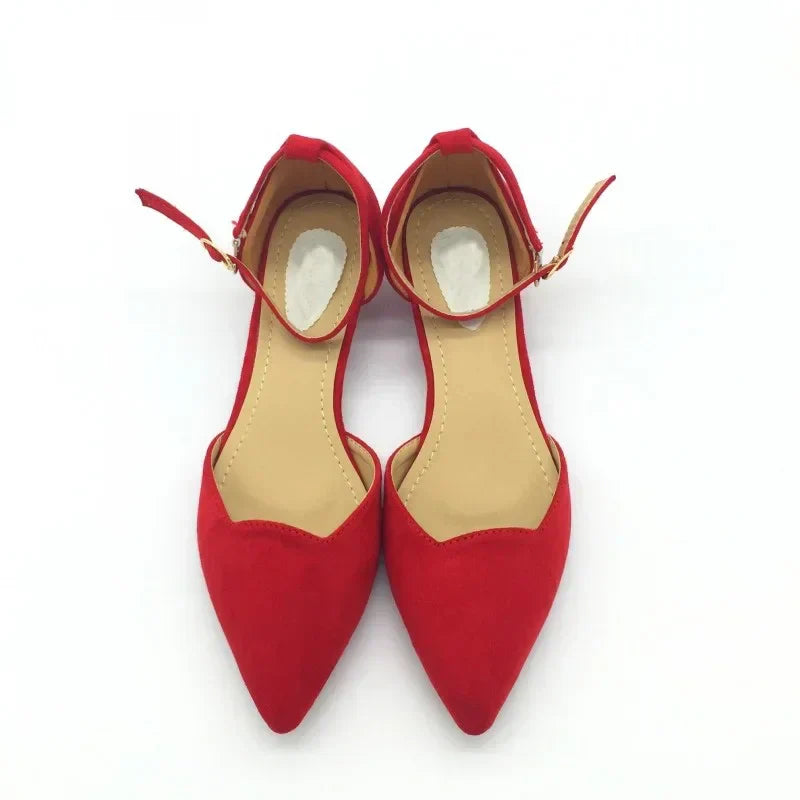 Hjemix | Kvinners Spenne Stropp Lav Hæler Pumper Spiss Tå Flock D'Orsay Hæler Sko Enkelt Sko Blå