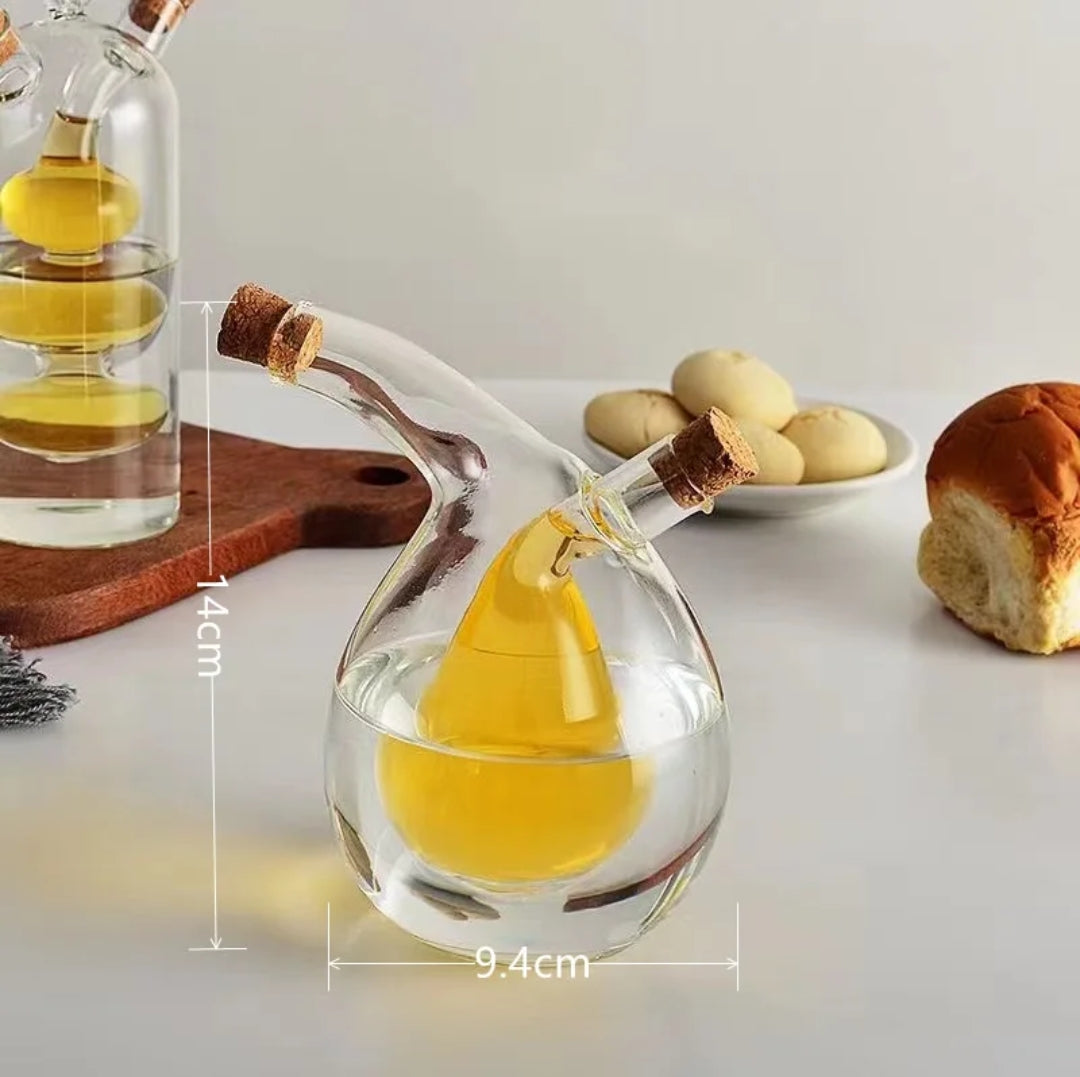 Dispenser for olje og eddik med to funksjoner og lokk av bambus