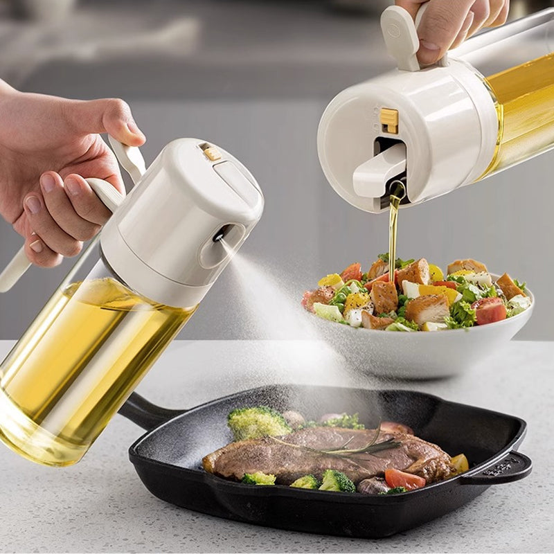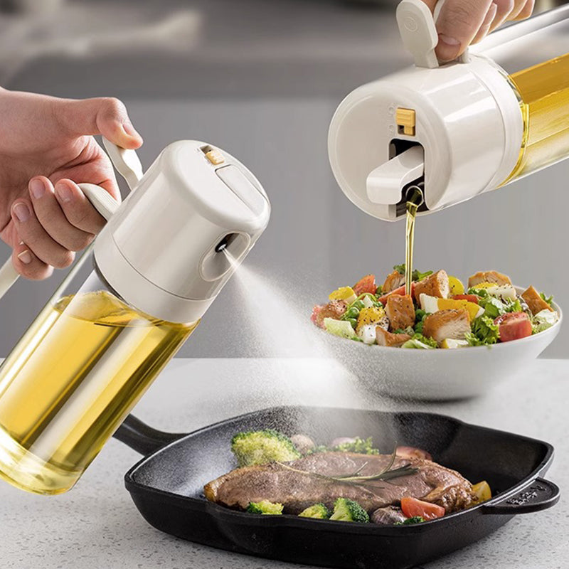 Slutt på behovet for å kjøpe spray olje nå som vår innovative flaske tilbyr begge!!! Med ett enkelt trykk kan du oppnå kulinarisk dyktighet med 2 i 1 sprayflasken! SKAFF DEG DIN I DAG