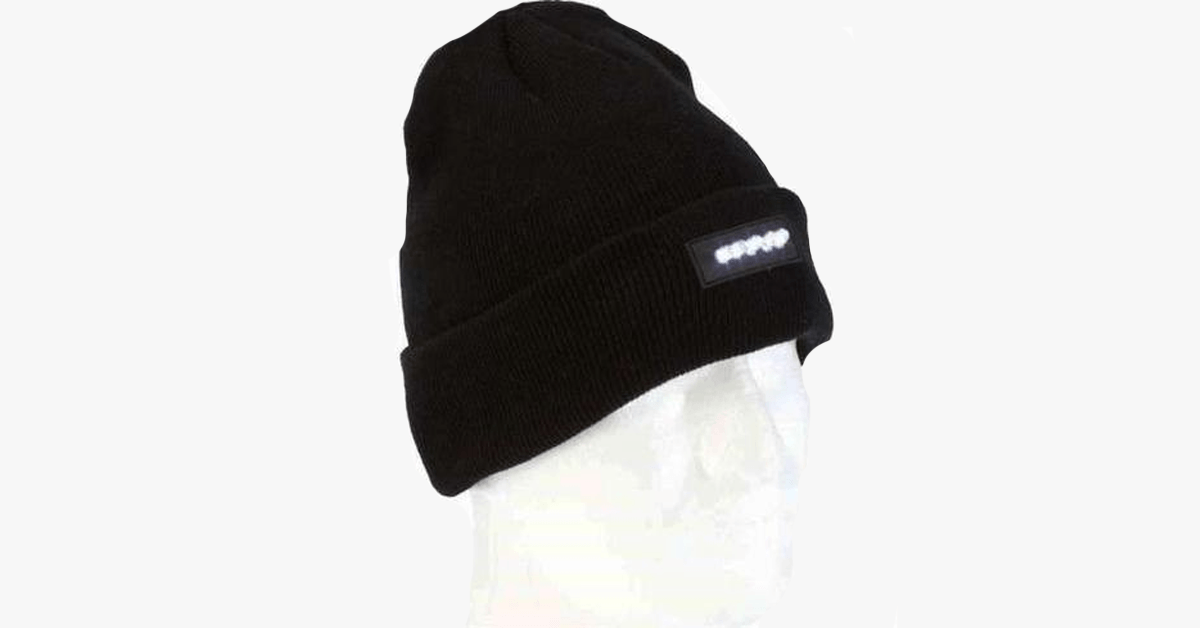 - Hatten er utstyrt med 5 ultra-klare LEDs og en av/på-bryter