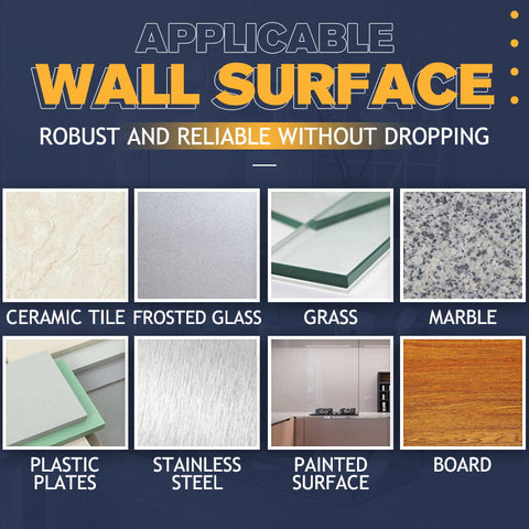 - Egnet veggtyper: Kroken fungerer godt på glatte overflater, som keramiske fliser, glass, glatt tre, metall, rustfritt stål, glatt marmor osv.