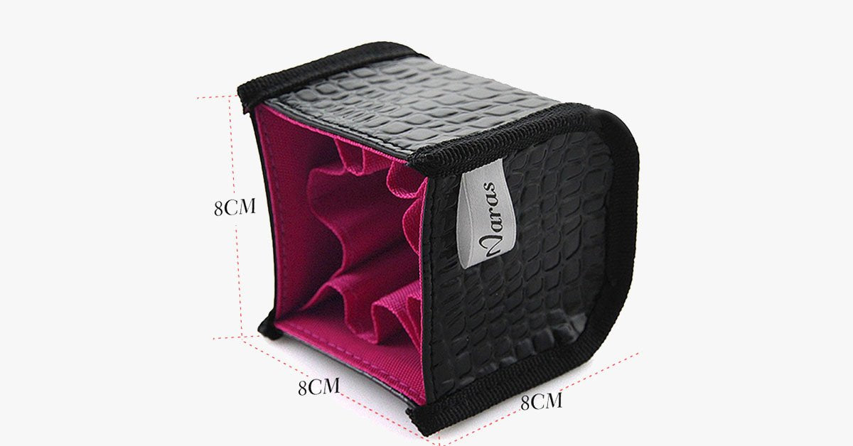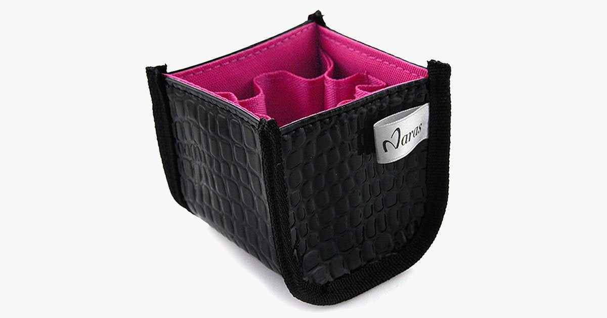 Har du ofte vanskeligheter med å finne sminkebørstene i vesken din? Er det en utfordring å holde dem organisert? Vi har den perfekte løsningen for deg. En sminkeorganisator er akkurat det du trenger for å sikre at svampene og børstene dine er trygt plassert. Hold vesken din ren og fri for kaos med denne sminkeorganisatoren. Den har et stilrent og elegant design som reflekterer din personlige smak. Laget av høykvalitets syntetisk lær, har den en myk rosa innvendig fôr. Til tross for sin kompakte og bærbare størrelse, tilbyr den praktiske fordeler for hver kvinne eller sminkeelsker. Den er ideell for å oppbevare pinsetter, saks, svamper, børster og mye mer på en organisert måte.
