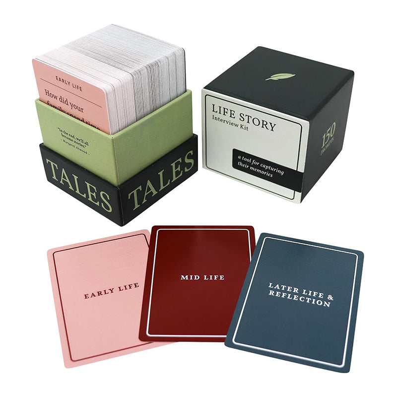 150 profesjonelt utformede spørsmålskort for å hjelpe deg med å bevare deres minner for fremtidige generasjoner.