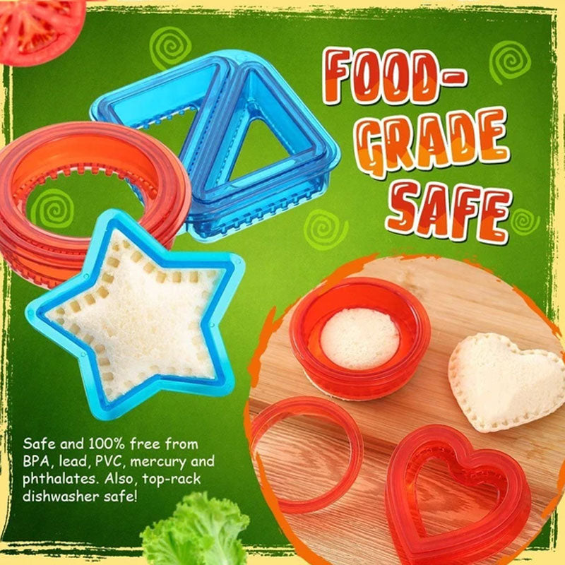 Det smarte designet lukker kantene på sandwichen, og sikrer at fyllet holder seg på plass uten søl. Med fem forskjellige og spennende former tilgjengelig, gir de små, enkle porsjoner for barna. Laget av matgodkjent PP, de er trygge, giftfrie og BPA-fri.