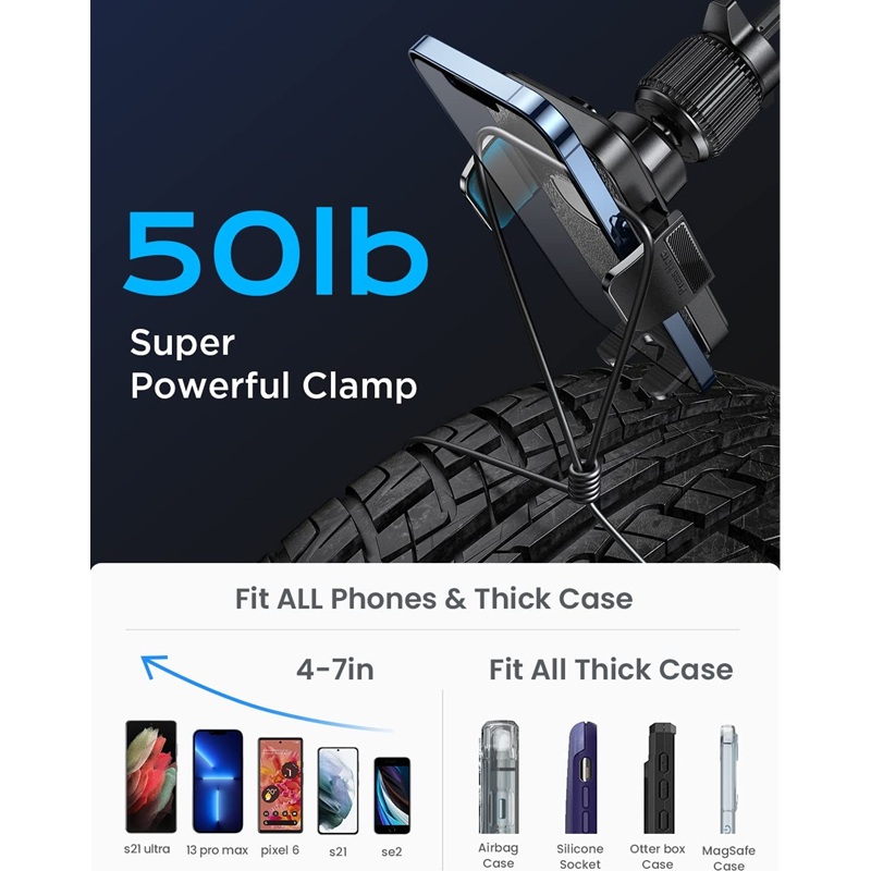 - [Fullt justerbar 360-graders visning]Med en rotasjon på 360 grader kan du finne den perfekte visningsvinkelen, slik at du lett kan se på skjermen på telefonen din mens du kjører, uten å bli forstyrret av en ubehagelig holder eller feilvisning.