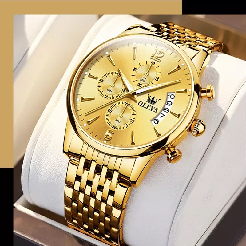 - 1* Luksus Gull Tre-Dial Chronograph Automatisk Mekanisk Klokke