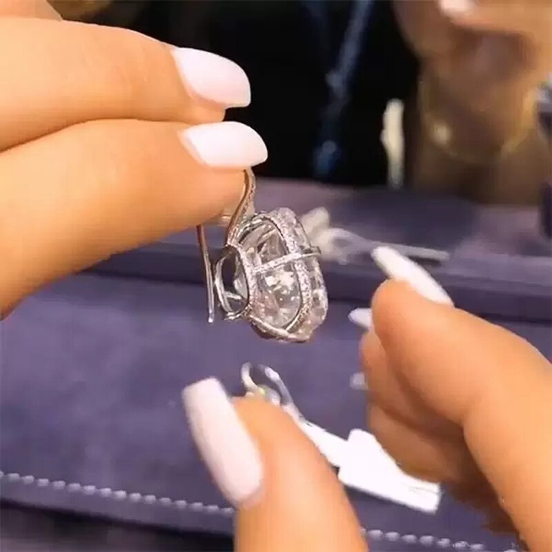 Hjemix | Luksus Hvit Kubisk Zirkonia Dangle Øredobber Kvinner