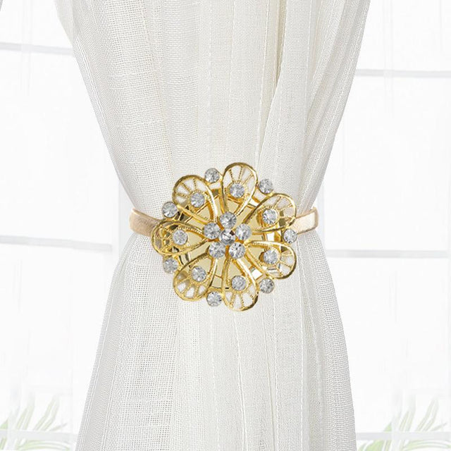 Magnetiske Gardinklemmer - En elegant løsning for å styre gardinene dine. De glimrende rhinestenene lyser opp veggen din i sollyset og gir vinduene dine et luksuriøst preg. Magneten er ekstremt sterk og pålitelig, noe som sikrer at den forblir stabilt på plass.