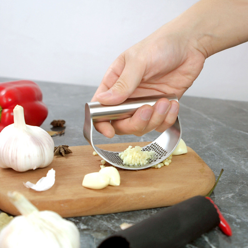 Denne innovative buede hvitløkpressen er utstyrt med et behagelig håndtak som gjør pressing enkelt for personer med nedsatt grep eller små hender.