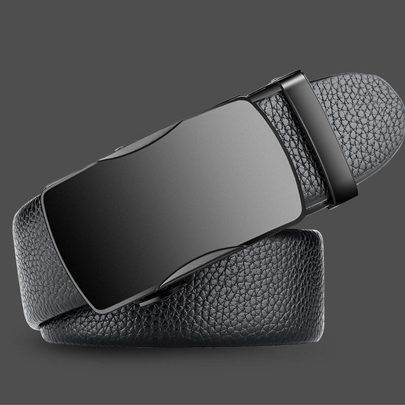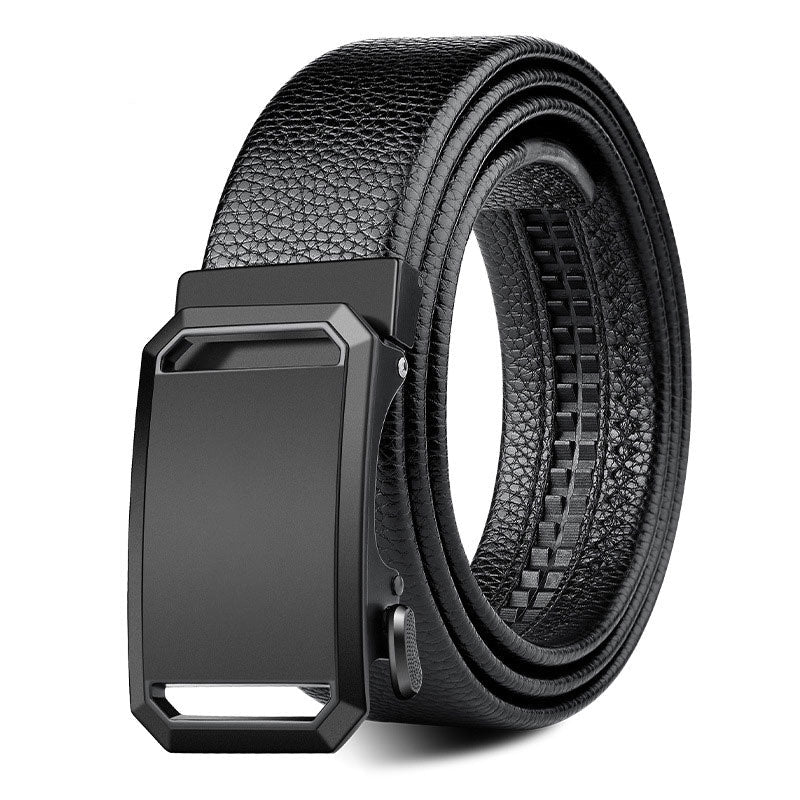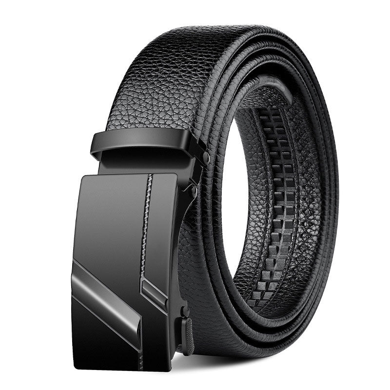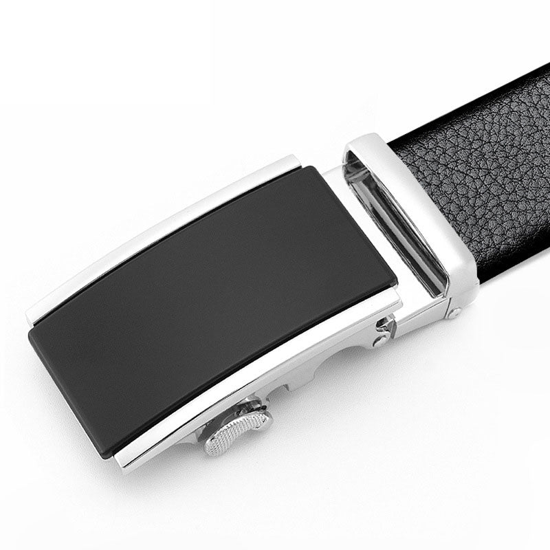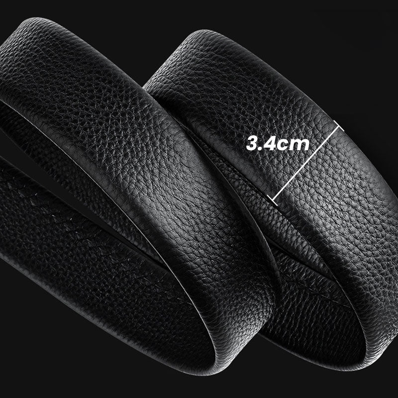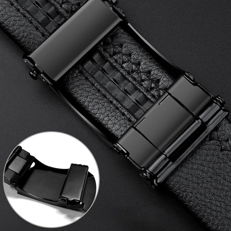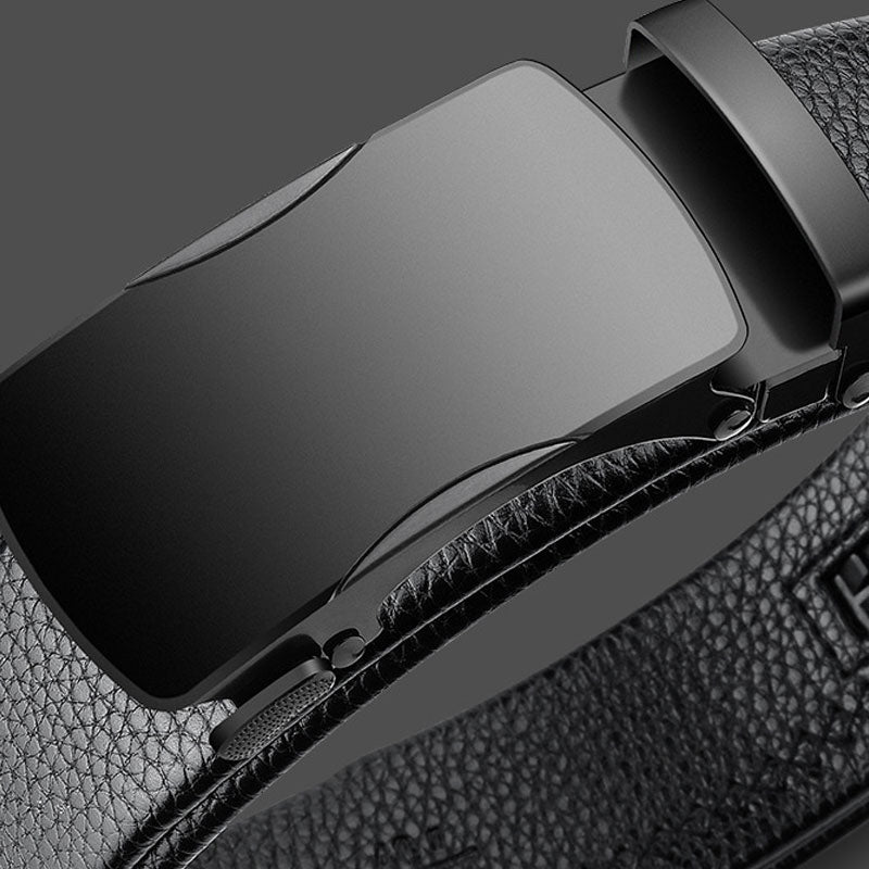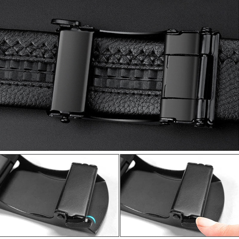 ENHÅND JUSTERING - Skyv lærbeltene inn i spennen, og klikk på spennen for å låse den automatisk. Trykk forsiktig på spaken på siden av den automatiske spennen, og dra casual beltet for å frigjøre det. Enkelt, jevnt og elegant!