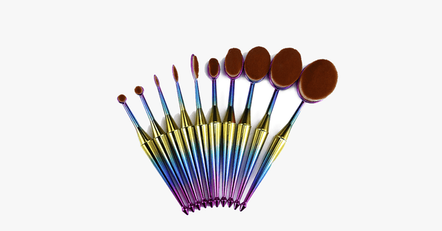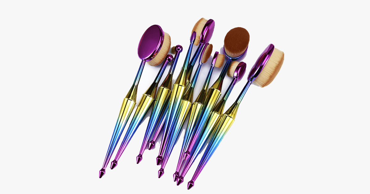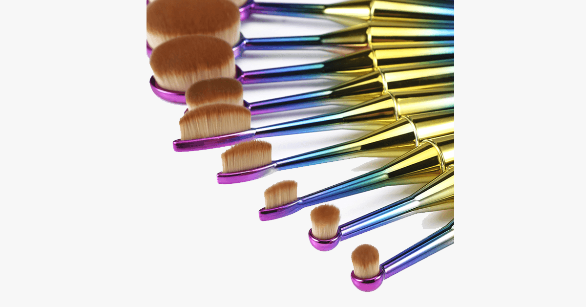 Hjemix | Havfrue 10-dels oval børstesett - Legg til litt ekstra farge til sminkebørstene dine