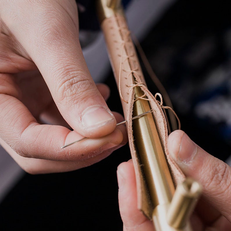 Våre solide, håndlagde håndtak i messing og lær gir et moderne preg til enhver møbel. Deres stilige og trendy design passer ypperlig til både kjøkken og bad.