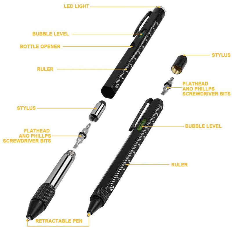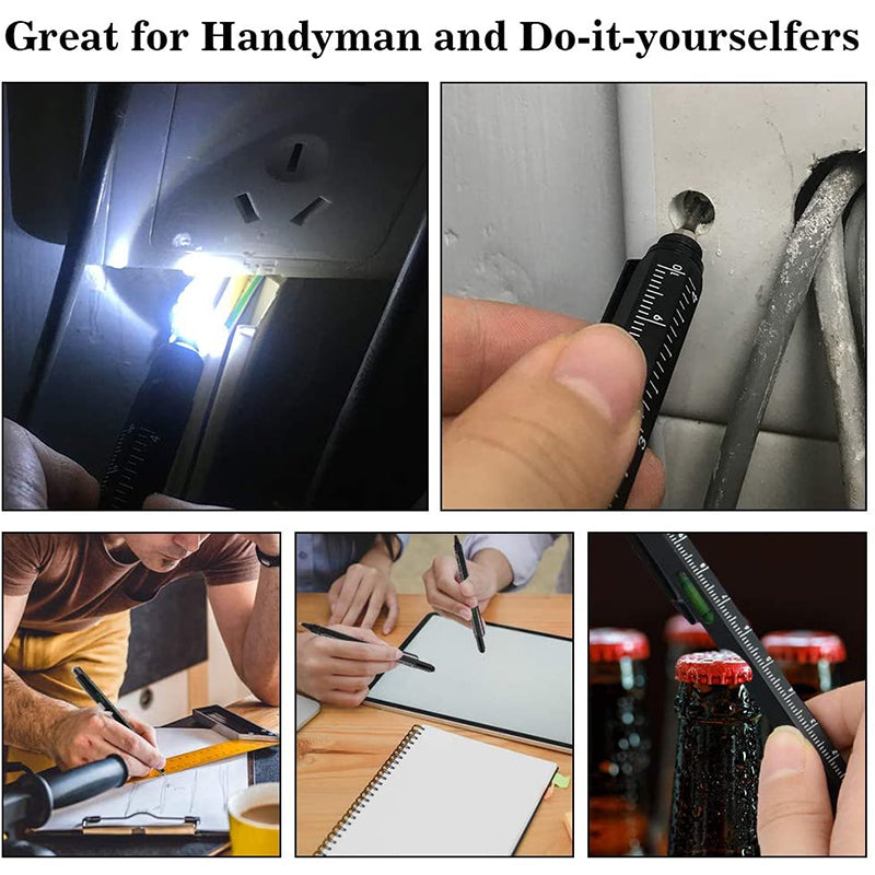 6 i 1 Multifunksjonell Verktøy Penn: Denne alt-i-ett pennen fungerer som en stylus, flathead- og Phillips-skrutrekker, nivå, tegnesjablong og berøringsskjerm-stylus. Den er laget for å hjelpe deg med ulike DIY-prosjekter og utendørsaktiviteter.