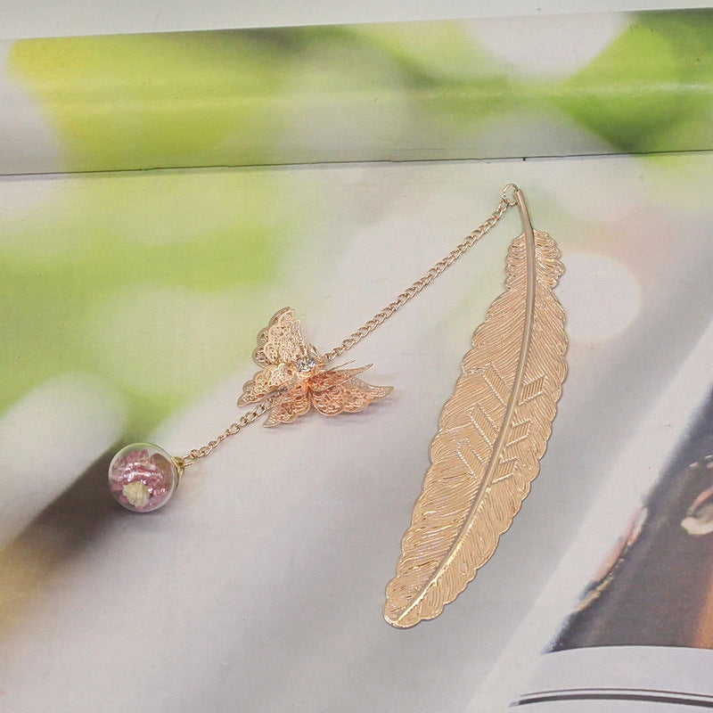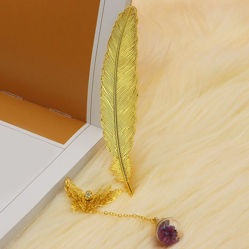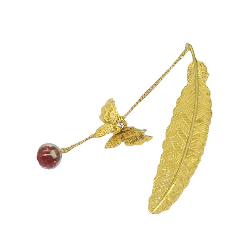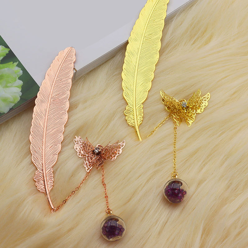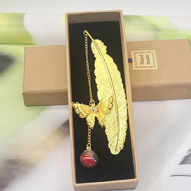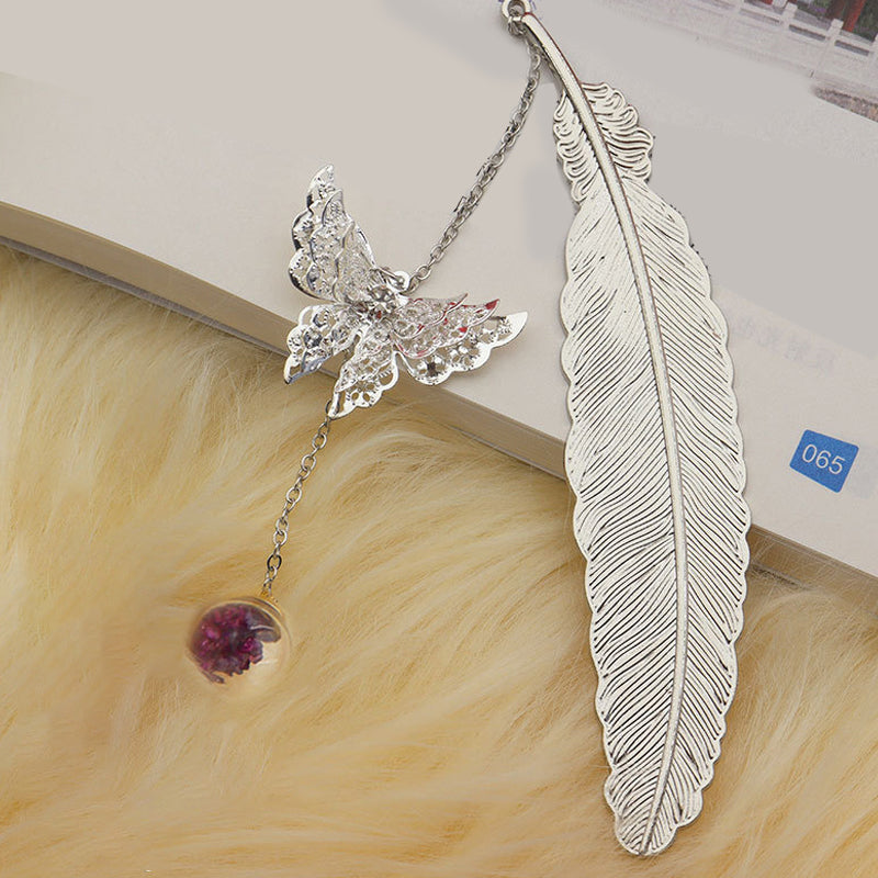 Stilig Design - Dette bokmerket med vintage-inspirert stil inkluderer en detaljert 3D metallbillett samt et vakkert glassperle charm som symboliserer tørkede blomster. Det tar sikte på å berike din leseopplevelse og fungere som et flott samtaleemne for alle som elsker å lese.
