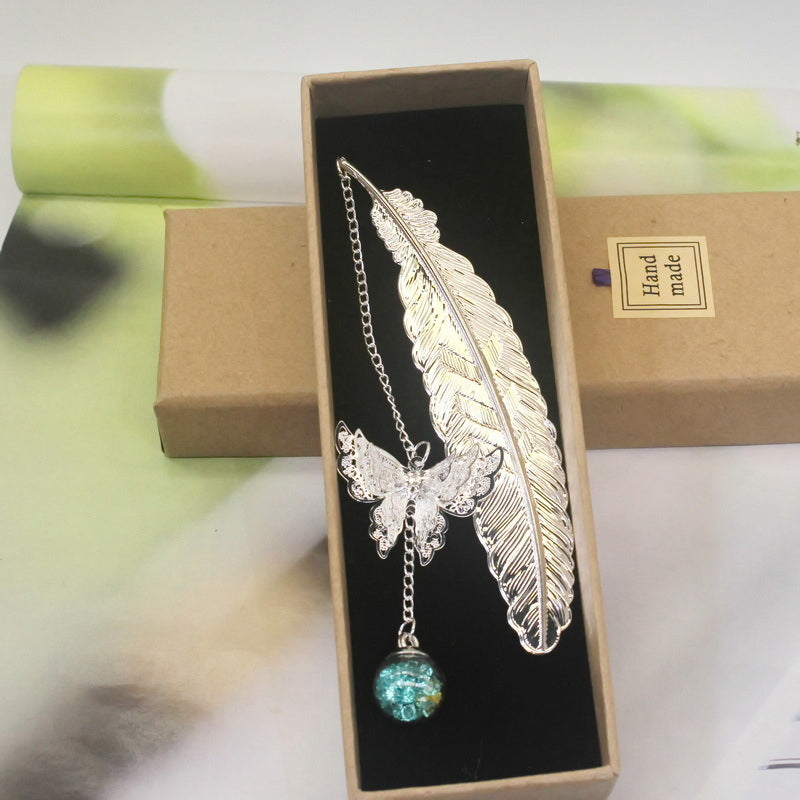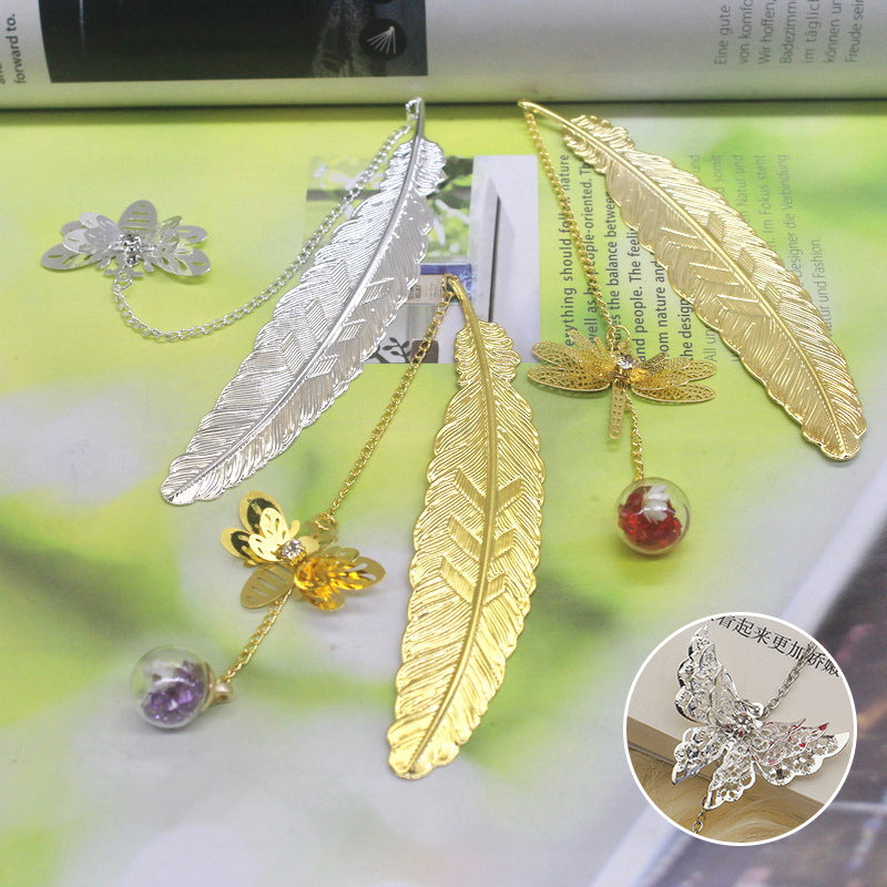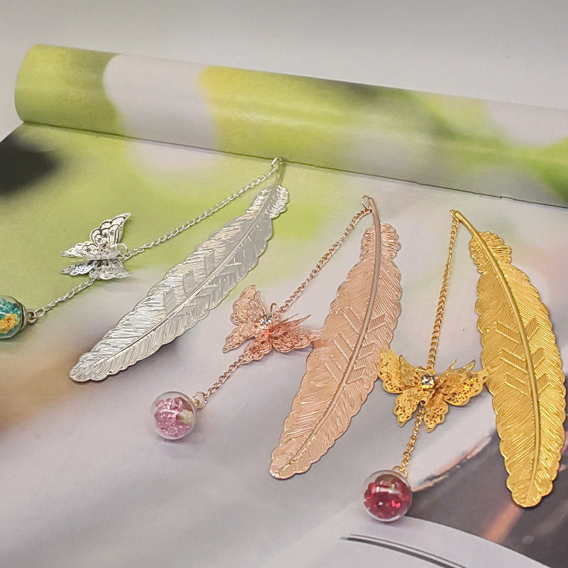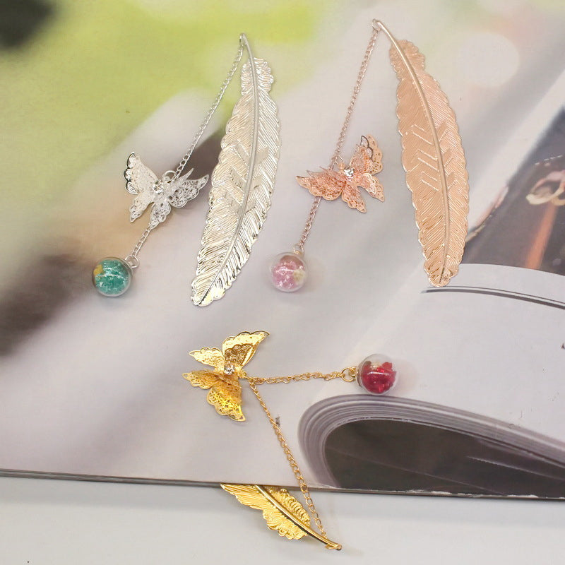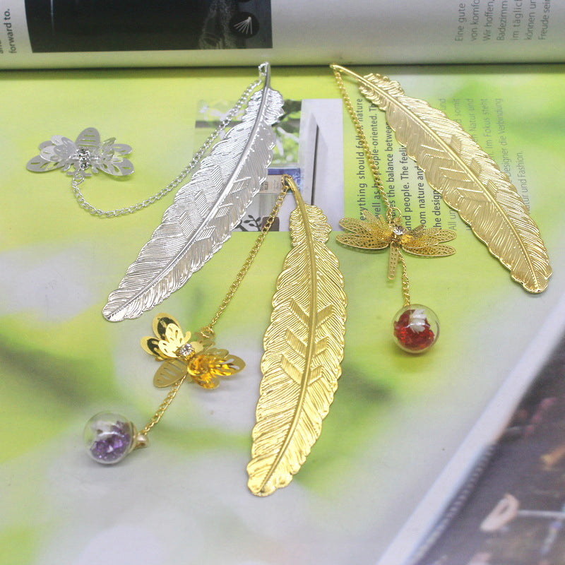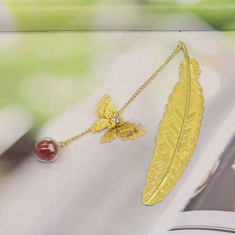 Stilig Design - Dette bokmerket med vintage-inspirert stil inkluderer en detaljert 3D metallbillett samt et vakkert glassperle charm som symboliserer tørkede blomster. Det tar sikte på å berike din leseopplevelse og fungere som et flott samtaleemne for alle som elsker å lese.