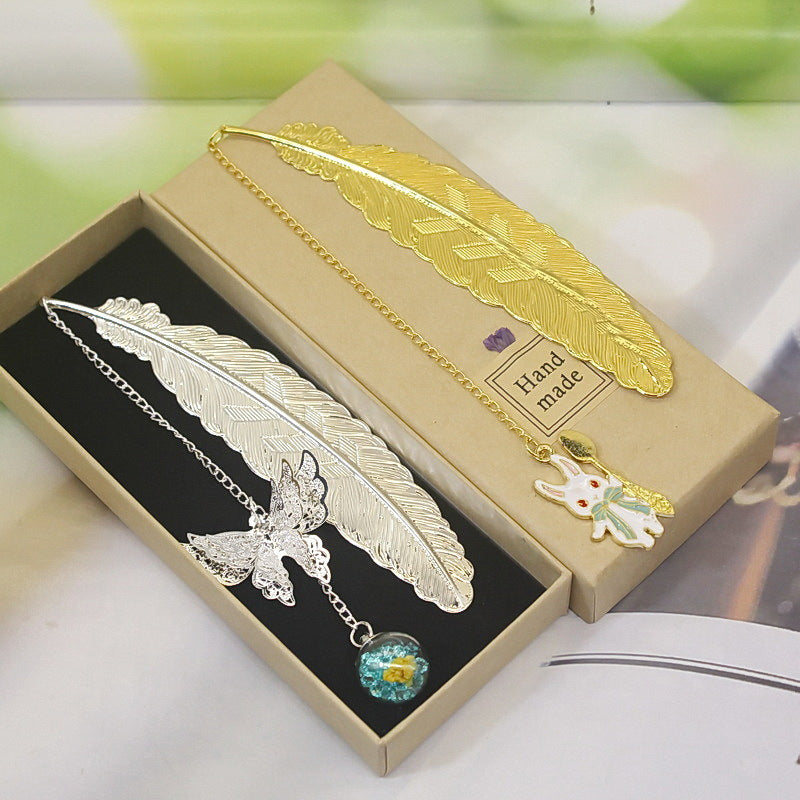 Håndverk av Høy Kvalitet - Hvert bokmerke er laget av kobber og er nøye håndlaget, noe som gir en lett og elegant følelse. Det bidrar til en behagelig og inspirerende leseopplevelse og oppmuntrer lesere til å finne sitt indre mot. Størrelse på fjæren: 4,5 x 0,9 tommer, lengden på charmen er ca. 4 tommer, esken måler: 6 x 2 x 1,2 tommer.