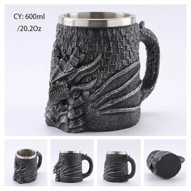 Hjemix | Middelaldersk Drage Harpiks Rustfritt Stål Krus som Kaffe Krus eller Te Krus