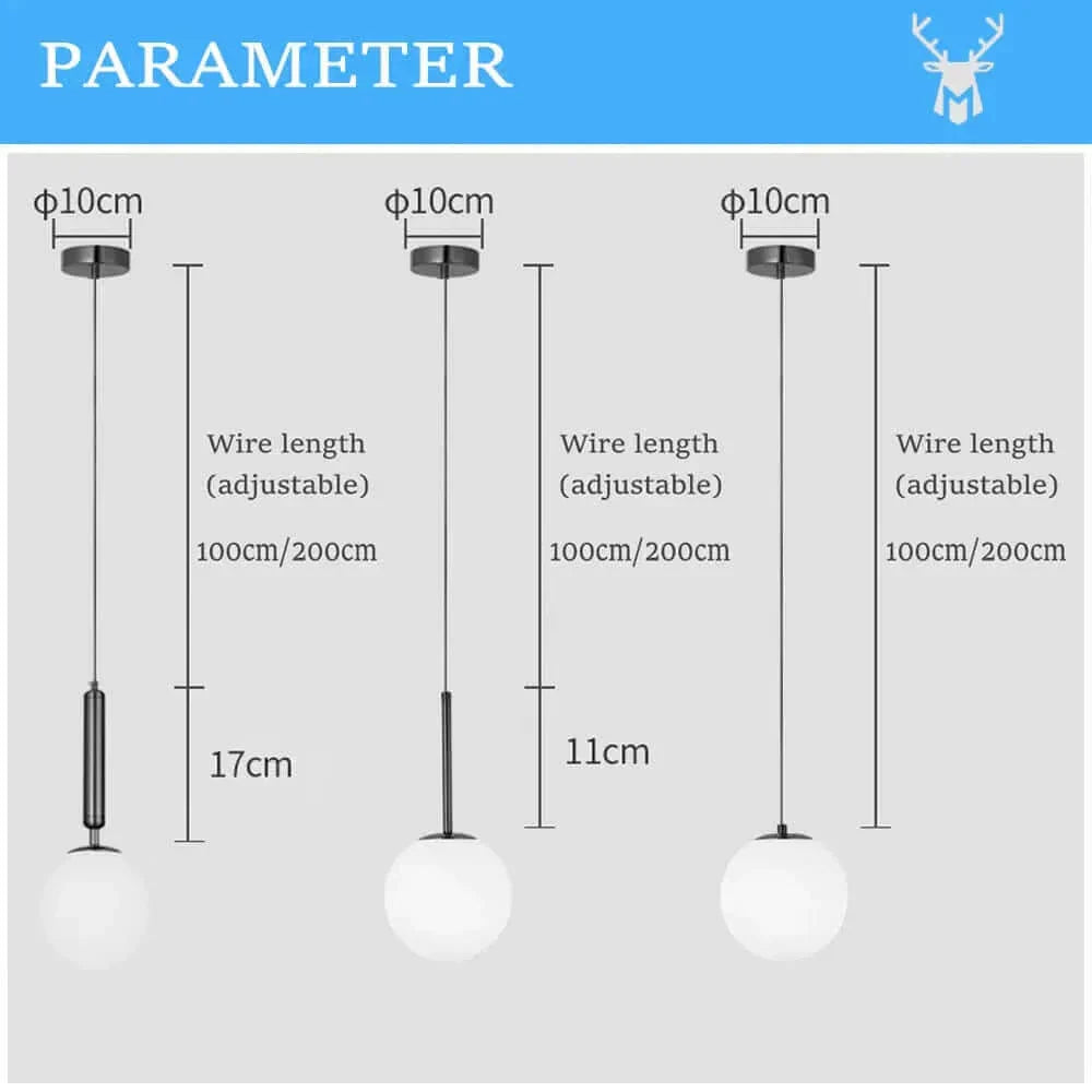 Mid-Century Modern Glass Ball pendellamper kommer med en 100 cm lang kabel for enkel installasjon og justering av høyde. De er kompatible med LED-pærer (som ikke er inkludert), som gir en energieffektiv og langvarig belysningsløsning.