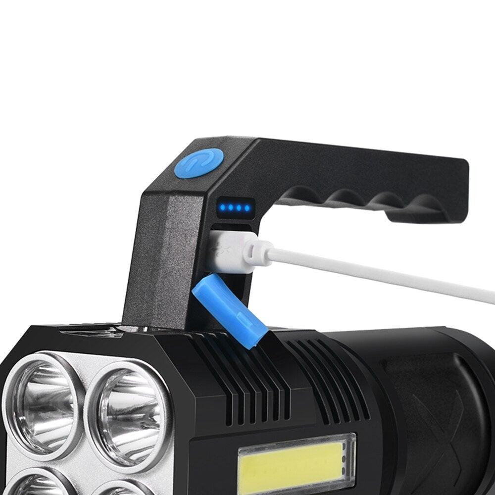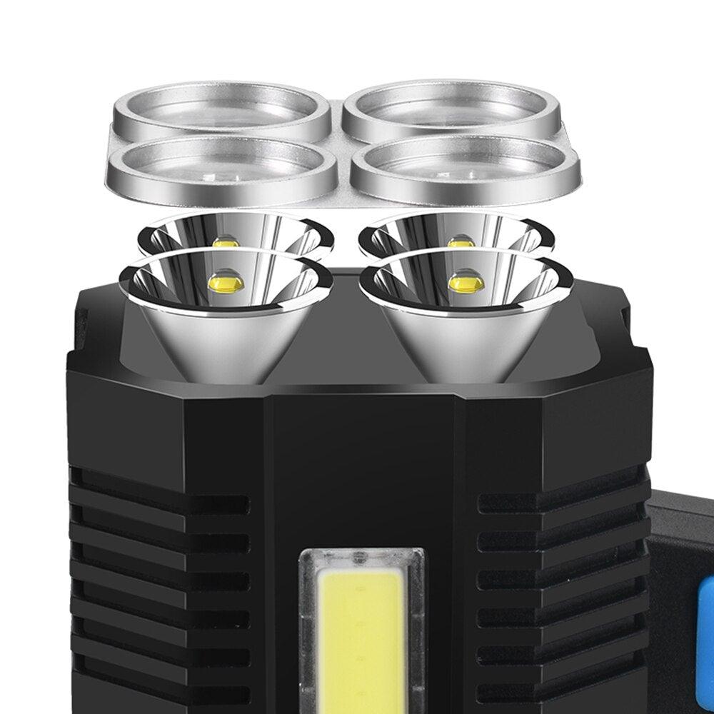 - UTMERKET DESIGN: 4 LED-lamper i den oppladbare lommelykten er strategisk plassert på lampehodet. Dette gir superb fokusering til lommelykten. Den er designet for å være behagelig for øynene når du trenger nært lys til oppgaver, lesing eller reparasjoner. Inkluderer 4 justerbare lysinnstillinger: sterkt lys, middels lys, strobe og flomlys.