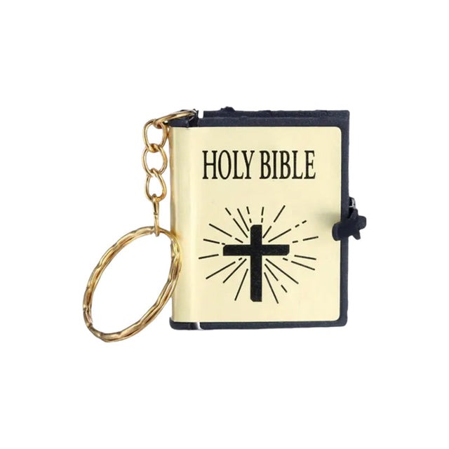 Denne stilige nøkkelringen inneholder en ekte mini-bok. Selv om det kan være en utfordring å lese teksten direkte, vil et forstørrelsesglass være til stor hjelp.