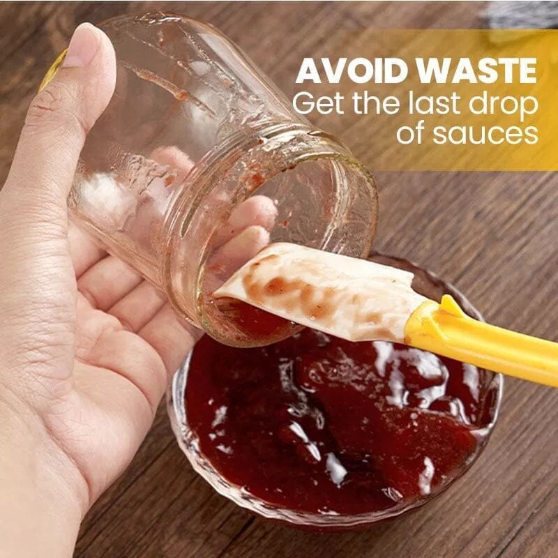 Et fantastisk kjøkkenredskap som kan brukes til å skje ut, skrape, spre, blande, og til og med åpne bokser. Det hevede kurvedesignet tilpasser seg ulike typer glass og bokser, slik at du får med deg hver dråpe av saus og reduserer svinn.