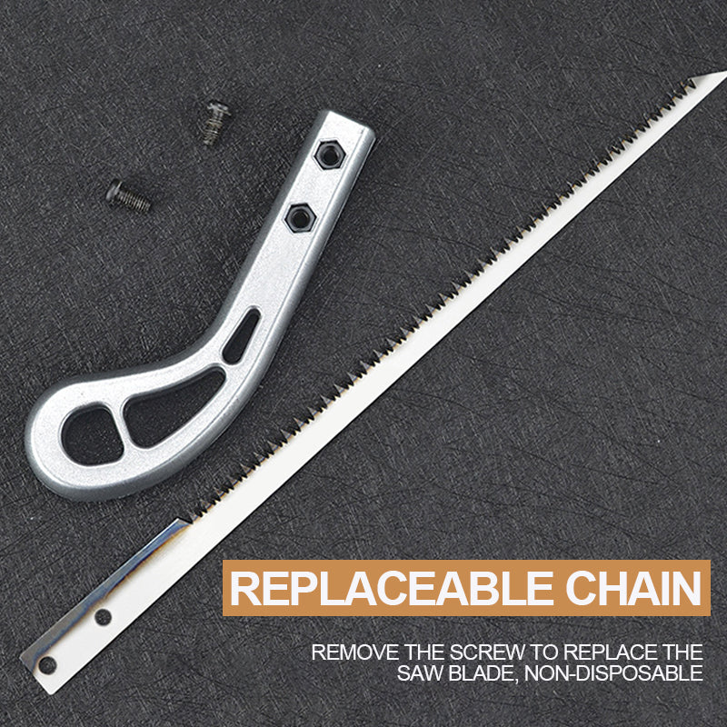BLADEBYTTE: For å opprettholde optimal ytelse på sagen, kan du enkelt skifte ut det slitte bladet med et nytt fra hvilken som helst produsent av ryggsagblader du foretrekker. En fremragende funksjon er det innovative festesystemet som gjør det mulig for deg å bytte til hvilket som helst kompatibelt blad, så lenge det er et standard ryggsagblad.