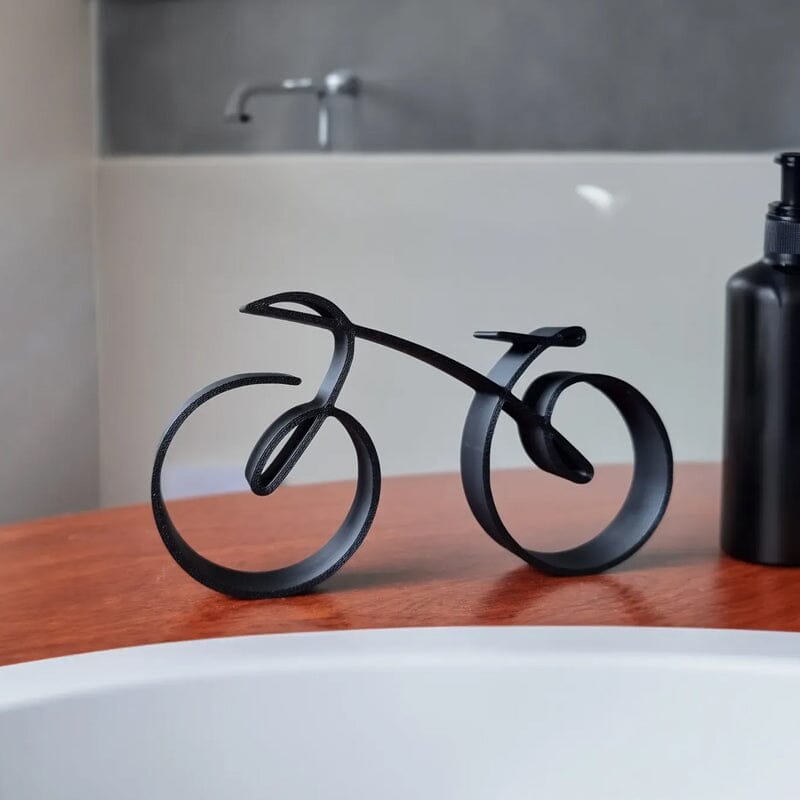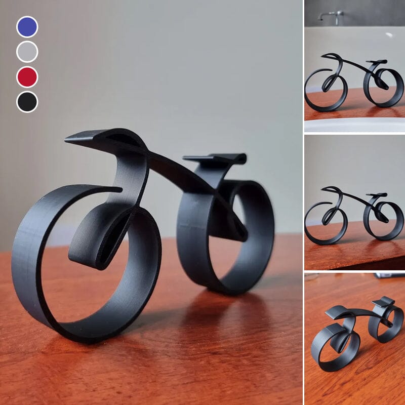 Presenterer en stilren sykleskulptur med minimalistisk design.
